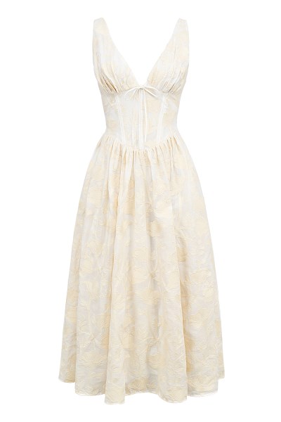 $89.70FREE DELIVERY ON YOUR ORDER Description Channeling understated elegance, 'Emmelina' is an effortless wear-anywhere style in a delicate fabric. The floral embroidered ramie cotton is delicately dainty and light and fresh to wear for warmer months. The plunge neckline perfectly mirrors the open back and the bodice is corseted to…