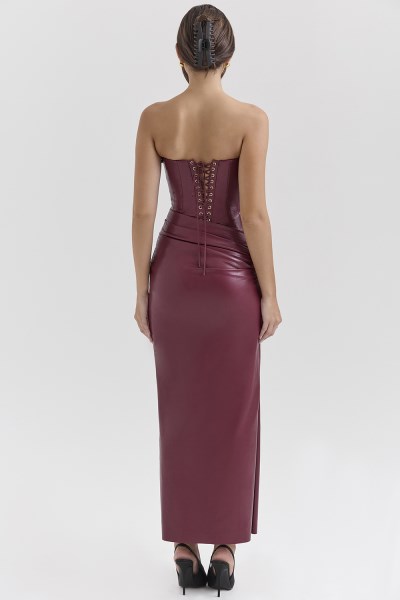 Unleash your inner siren with ‘Juliana’, a seductive body-hugging long midi dress that redefines allure. Crafted from luxurious stretch vegan leather, this strapless design features a cupped bodice that perfectly sculpts your curves, ensuring all eyes are on you. The skirt gracefully drapes from the hips, creating a sleek silhouette that moves with every step. But the real showstopper? The daring lace-up detail at the back, adding an element of intrigue and drama that’s impossible to resist. Perfect for a night out or a special occasion, ‘Juliana' is your go-to for making a bold statement.  And you can forget the fuss; this dress zips to the side for easy wear and feels just as sumptuous as it looks. For the perfect fit, our A-C cup girls will want to go for our ‘Regular Cup’ option, and our ‘Bigger Cup’ will best suit our D-E cup girls.