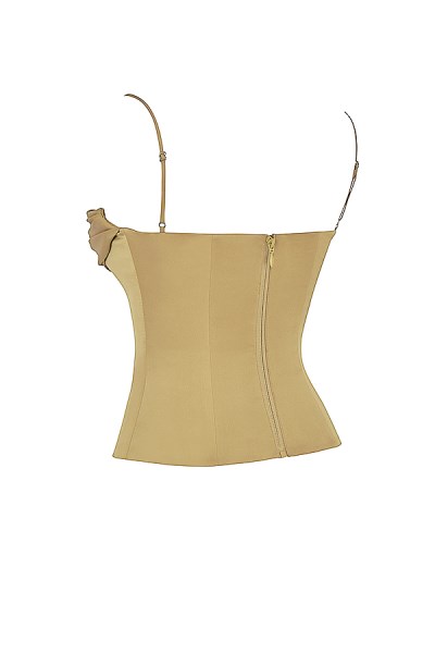 Our 'Letitia' corset will instantly dress up your favourite separates. Cut from our lustrous fluid satin in an olive hue, 'Letitia' has a longline silhouette and is fitted with our incredible corsetry boning to cinch the fit and has a beautifully draped cowl neckline that is ultra flattering and delicate spaghetti straps to tie at the shoulders. We love the lace up detail to the bodice for a vintage feel and fine feminine finish. It has a zip to the back for easy on and is fully lined for comfort. Wear yours with your favourite jeans or pair with our 'Erin' trousers in black. The 'Regular Cup' option suits cup size A-C whilst the 'Bigger Cup' option suits cup size D-E.