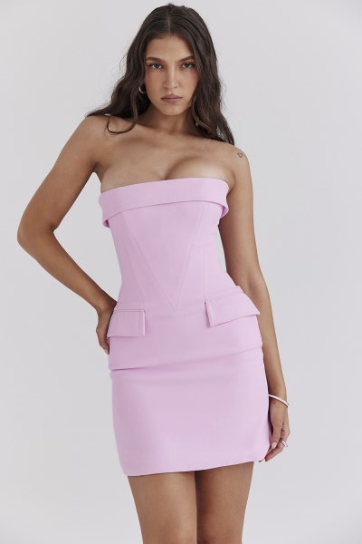 'Naia' dress is a Summer essential in a pretty Cotton Candy hue. The sleek silhouette has decorative flap pockets, mirrored by the fold over strapless neckline and the boned bodice ensures a cinched fit. It zips to the back for easy on and looks ultra chic paired with our 'Lola' high heels in sunkissed.