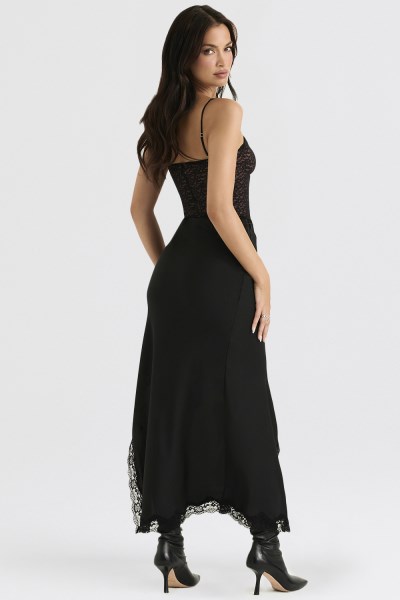 Our 'Ruby' midi skirt is beautifully cut on the bias from our ultra light duchess satin that skims over the hips and flows effortlessly across the body with a gentle gather from the left side. We love how the sexy side split extends from the natural waist and round to the front, traced in a scalloped floral lace trim along with the flattering midi hem.It has a zip to the right side for easy on and sits low on the waist. Wear yours with our 'Romina' black lace corset and delicate heels for a romantic date night.